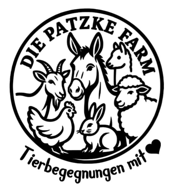 Auf der Patzke Farm leben Schafe, Ziegen, Alpakas und Esel, die besucht werden können und mit denen Spaziergänge gebucht werden können. Ein Klick auf das Logo leitet Sie direkt zur Patzke Farm weiter.